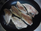 あじの開きをオリーブオイルをひいたフライパンで焼いてみる